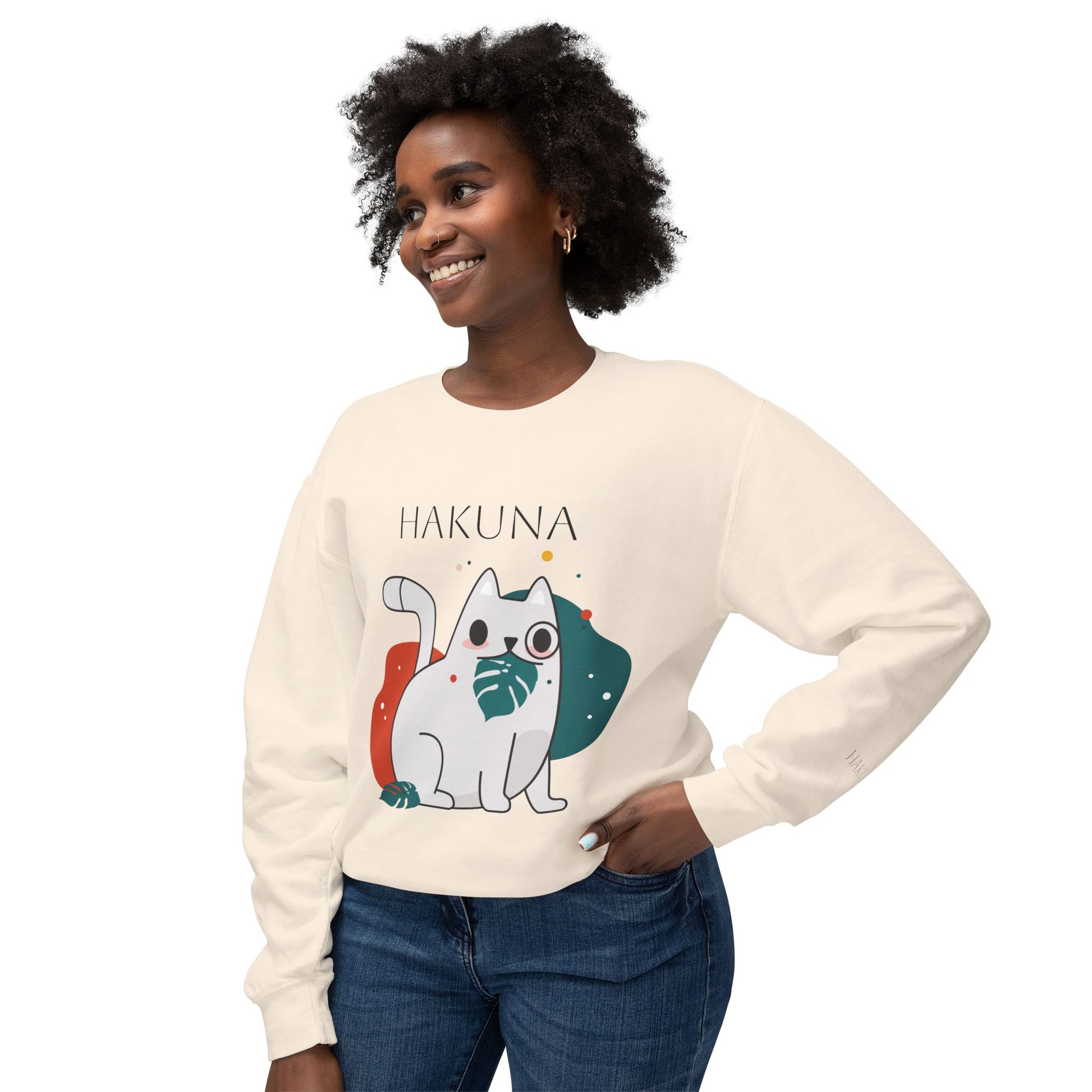 Hakuna Matata Cat Sweatshirt, Unisex Crewneck Pullover, Lightweight Casual Top, Funny Cat Gift, Perfect for Pet Lovers